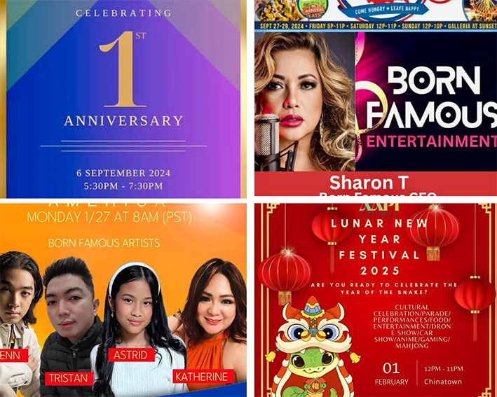 Currently the CEO Of Born Famous Entertainment, she’s a professional singer, songwriter, vocal coach international recording artist. Coached by the famous Seth Riggs (Michael Jackson’s Vocal Coach) . She released her first album “Awakening” here in the US in 2003 and reached number 7 in the Tower Record’s chart. Her single “Tell Me”, a dance version of the Philippines’s legendary composer/ producer Louie Ocampo’s composition, was released in Europe in 2004 and Continued her concert tours gigs in London, Burgundy, France and Italy. In 2007, her single ” He Told Me He Loved Me” landed in Dance Billboard Hits. She is the only Filipino judge in the Annual World Championships Of Performing Arts(WCOPA) for the past several years. She also opened an Artist Development School offering Vocal Coaching to aspiring singers and artists in 2005. Sharon T. has GROUPS produced champions and finalists in several singing competitions. One of her students Edsel Sotiangco got signed with YOUNG MONEY (Producer to Nicki Minaj, Drake, Tyga and many famous artists). The group WTF WE THE FUTURE toured with Lil Wayne last 2013 and back to back tours with Austin Mahone 2014. Sharon Recently Launched A Single “Be Mah Man” in Apple Music & Spotify & Collaborated with Jipsta for the single “New Man” which reached top 5 most played song in Apple Music . She Continues to expand her repertoire as a national anthem diva, singing the U.S. National Anthem multiple times in NBA games, WNBA Aces, Las Vegas Aviators including the Whitehouse and continues to manage young artists.